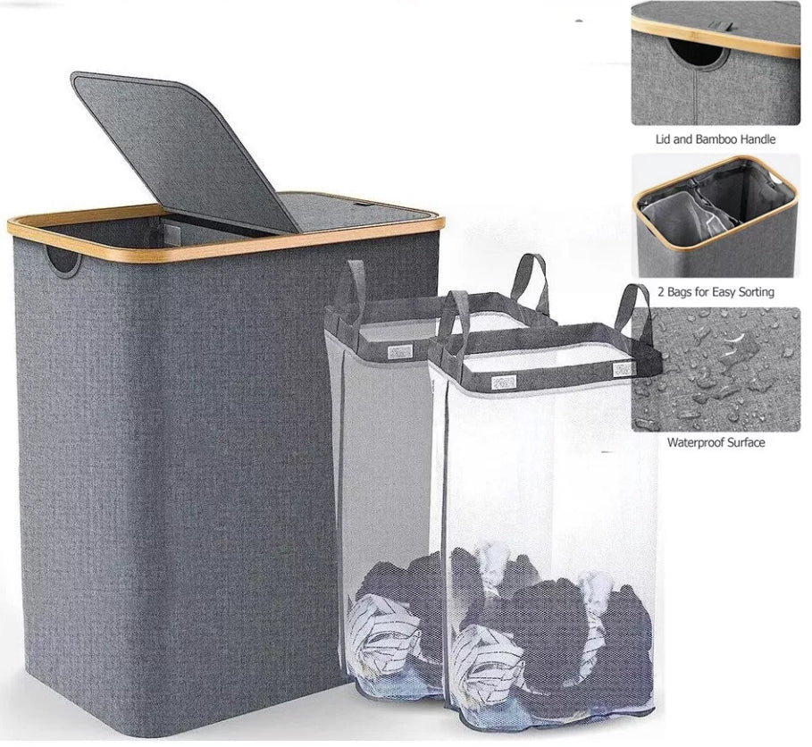 - REMOVABLE BAG & LID: Say goodbye to messy laundry piles! HBlife laundry hamper is designed to accommodate all your dirty clothes in place. The laundry hamper features two inner removable bags that help to sort clothes into different categories while making it easy to transport and take out clothes. The lid keeps your dirty laundry hidden, maintaining a clean and organized space.