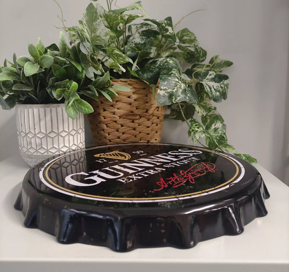 - Add a touch of vintage charm to your space with this Guinness hanging bottle cap metal sign.Β