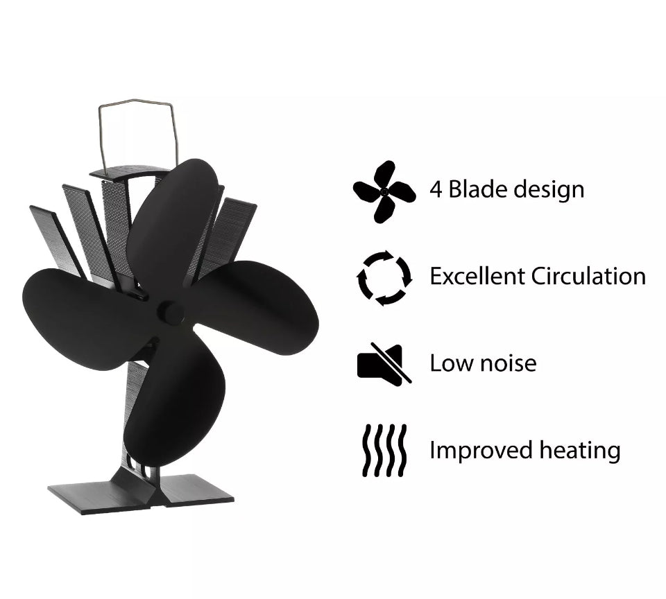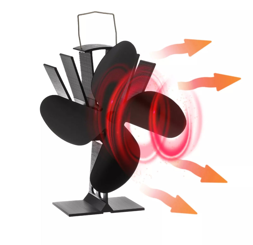 4 Blade Heat Powered Stove Top Fan Wood Log Burner Eco Friendly Warm Air Circulation with Temperature Thermostat