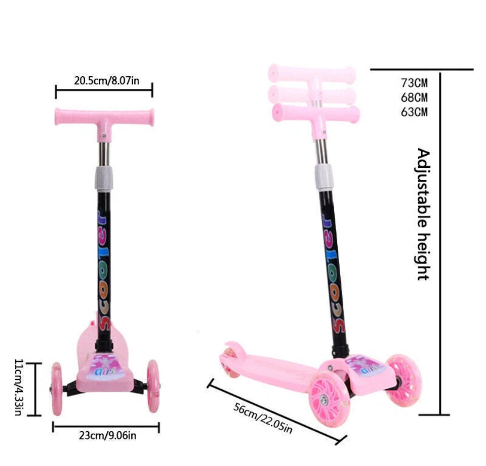 【LED Flashing Wheels】The children's scooter completes with two large flashing LED light front wheels and small rear wheels.The scooter will glow when roll, which are bright to see during the day and are more visible in the dark.