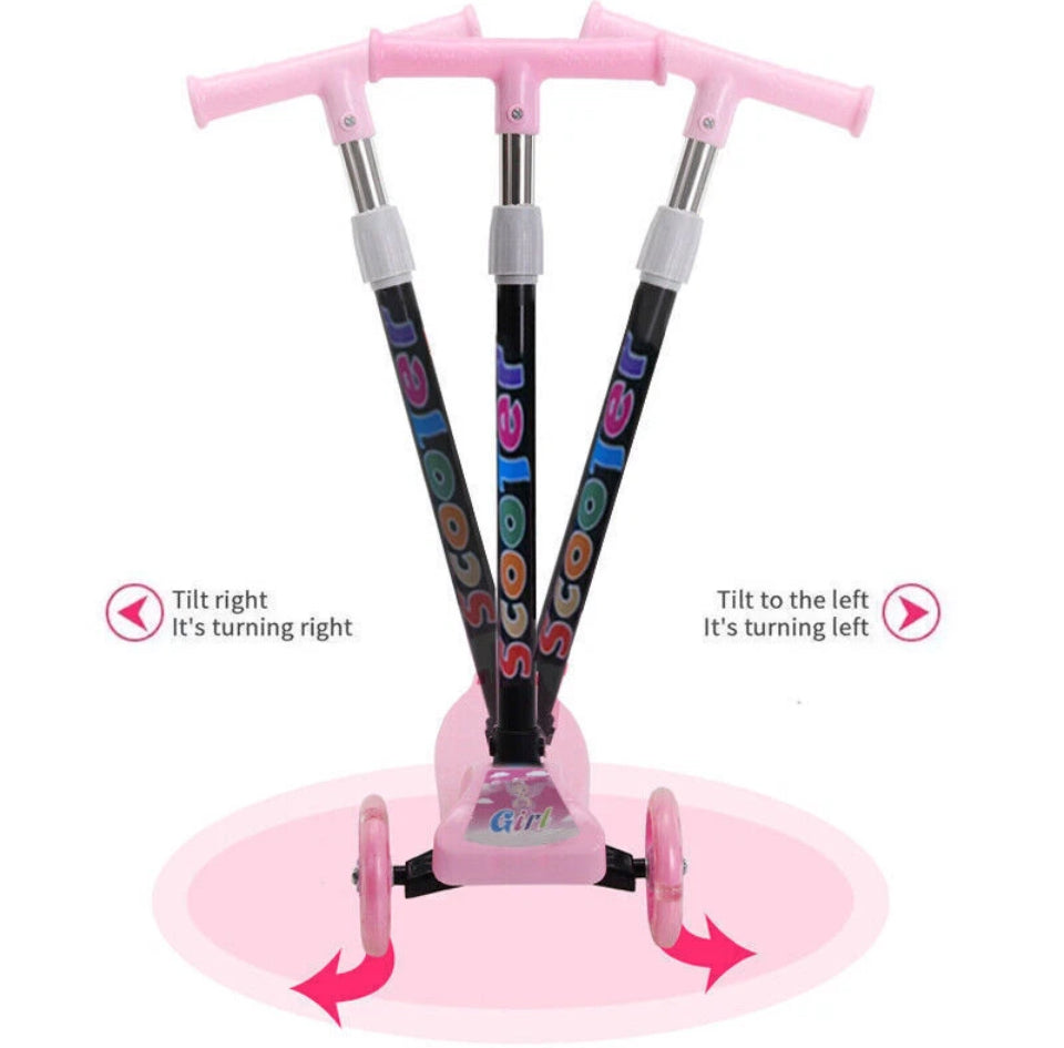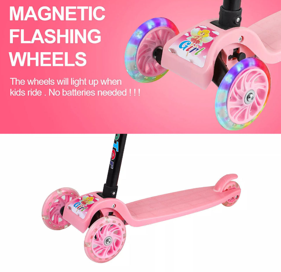 Kids Scooter Kick Push Flashing Led Light Up Wheels Tilt Steer