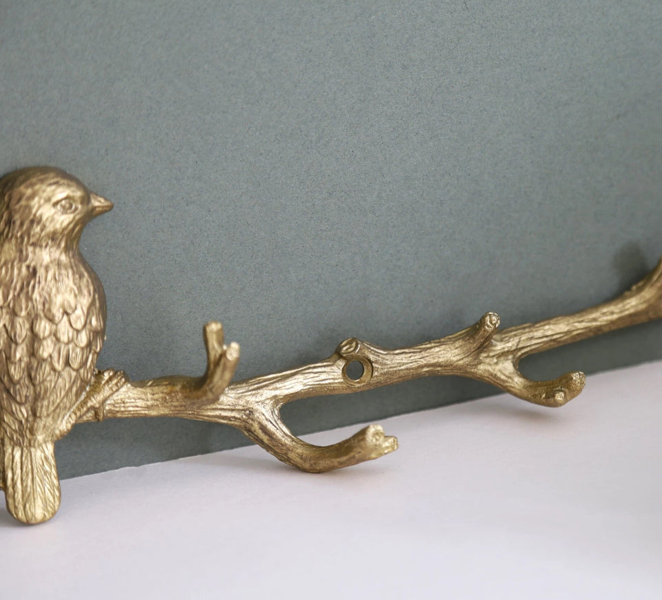 Gold Metal Bird on Branch 6 Hooks Coat Key Hanger