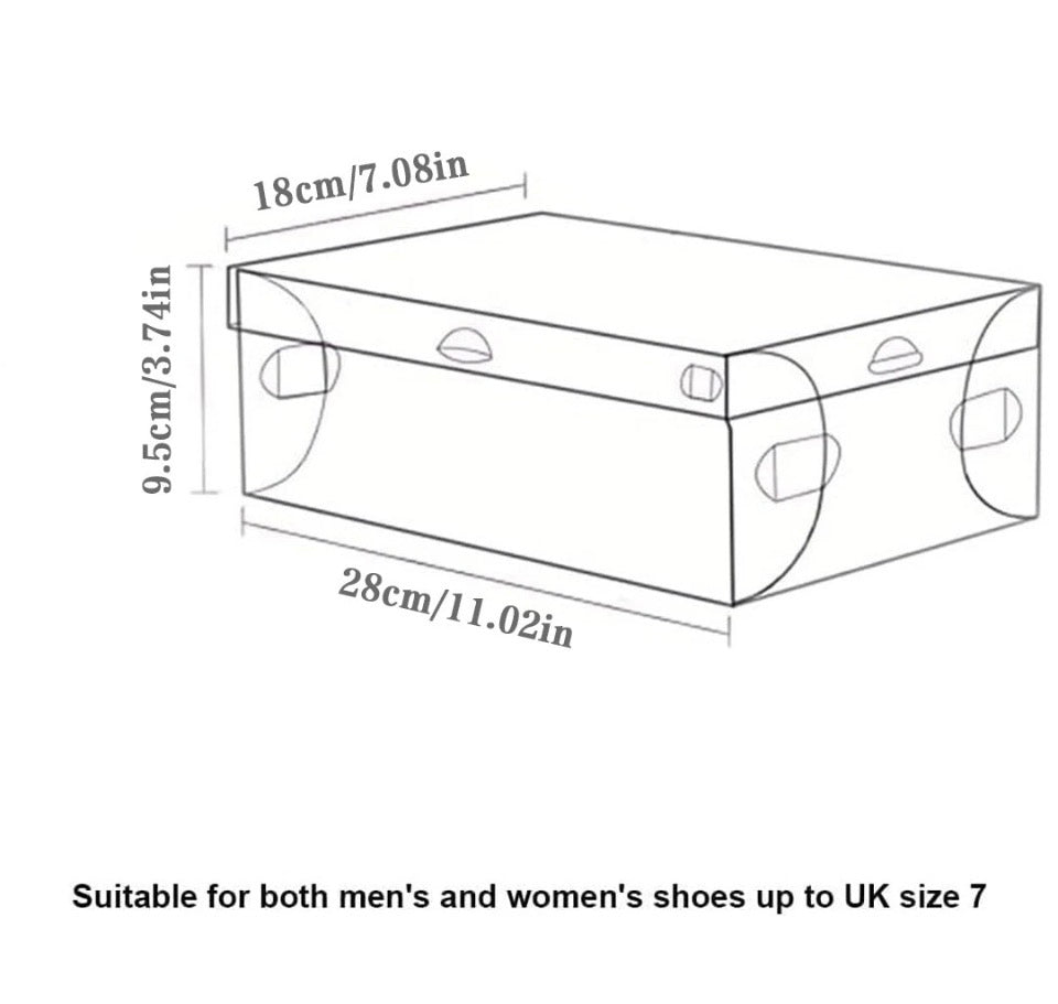 UNIVERSAL FIT: Our shoe boxes measure 28 x 18 x 9.5cm, suitable for both men's and women's shoes up to UK size 7. Each box holds one pair, ensuring your beloved shoes stay in pristine condition, just like when you first fell in love with them.