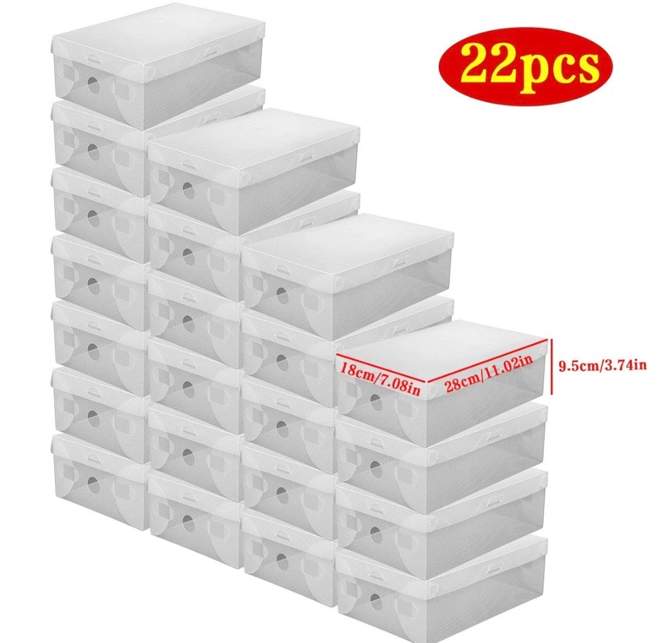 Introducing our 22-Pack Clear Shoe Storage Boxes - the perfect solution to keep your shoe collection organized and easily accessible! Designed to bring order to your closet or entryway, these transparent shoe boxes offer a stylish and functional way to store and protect your precious footwear.